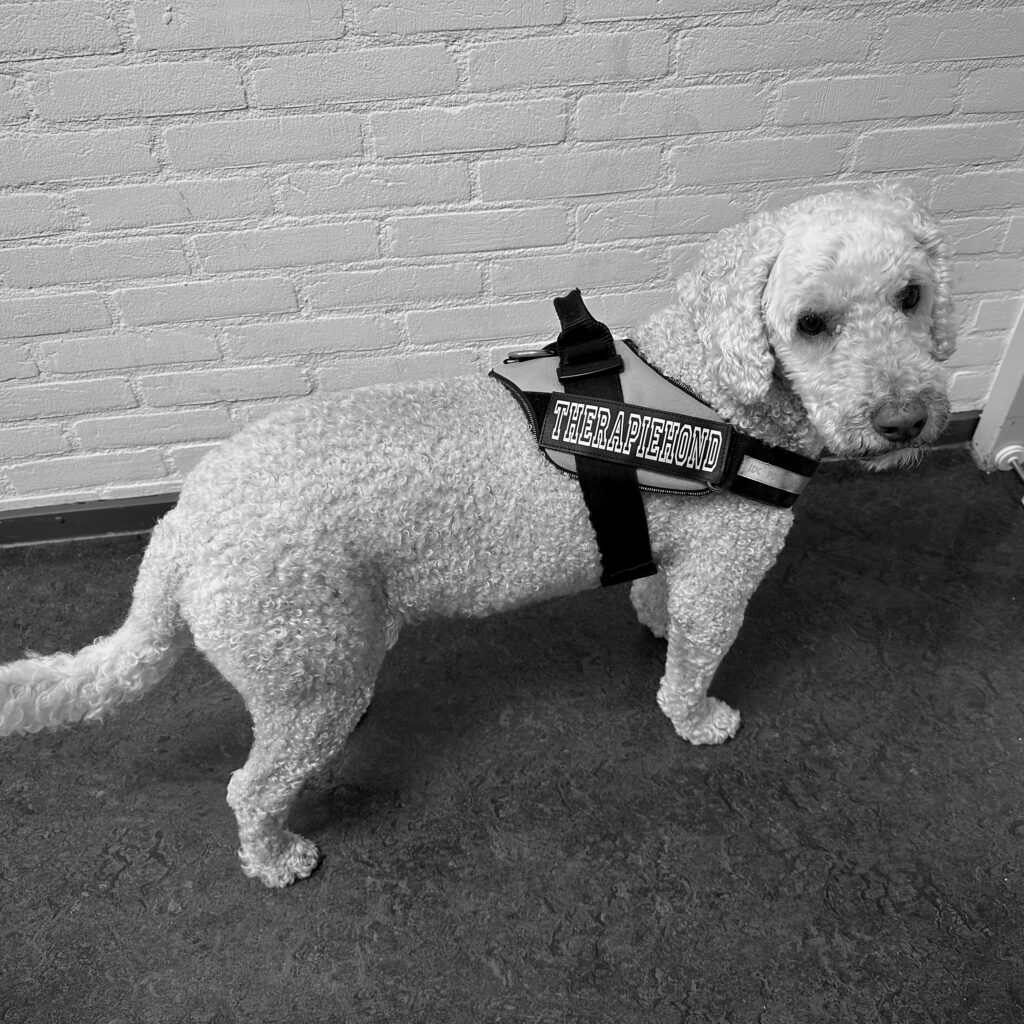 Wat De Zeppelin nog meer uniek maakt is Ollie, de therapiehond van Ines. "Ik heb de opleiding Animals Assistent Intervention gedaan met Ollie. Hij is echt opgegroeid in de klas. Het is een fijn maatje met wie kinderen kunnen knuffelen en hun emoties kunnen delen. Als ze boos zijn kunnen ze dat tegen Ollie zeggen. Maar ze kunnen ook even een stukje met hem wandelen. Ook voor kinderen met leesproblemen is Ollie ideaal. Zij vinden het vaak niet leuk om te lezen. Maar als je een hond voorleest is dat leuk. Hij reageert namelijk op je energie en je aandacht en merkt het niet als je foutjes maakt. Dus dat werkt heel goed."